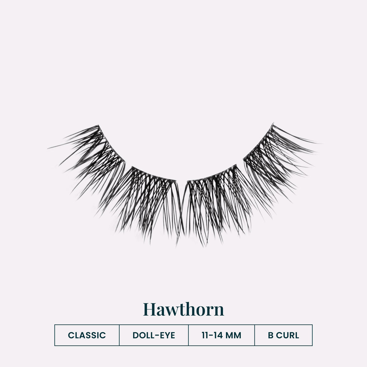 Hawthorn flaunts a classic lash shape with plenty of volume. Its wispy fibers and deliver stunning length variation with lots of texture, offering mega-volume, while remaining natural. Hawthorn boasts a slightly tapered inner corner, and a soft curl. Lovers of fan-favorite styles like The Sweetheart or Weightless 2 who are looking to try a style with slightly less curl will undoubtedly love this lash.