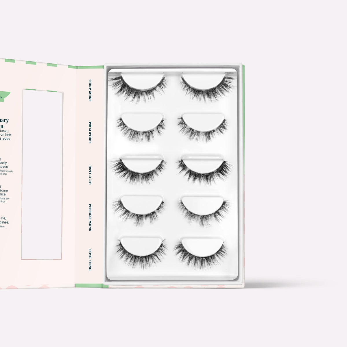 What’s Inside: ✨ Snow Angel – Winged and weightless for a graceful, eye-opening look (4–17mm) ✨ Sugar Plum – Fluttery, wispy, and sweet with a touch of drama (4–15mm) ✨ Let It Lash – Bold, voluminous, and made to steal the show (8–15mm) ✨ Snow Problem – Light and airy with a soft, natural curl (5–15mm) ✨ Tinsel Tease – Fluffy, full, and festive—just the right amount of glam (7–15mm)