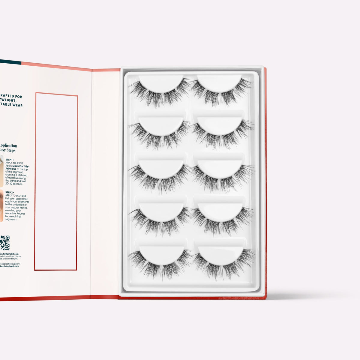 Each lash is segmented into four lightweight pieces. Apply one segment at a time under your natural lash for a seamless and natural look: