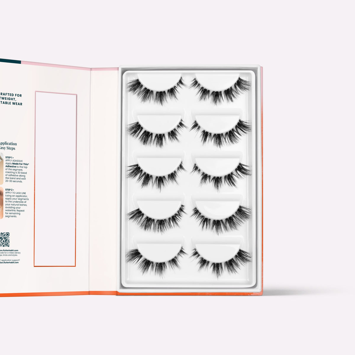 Each lash is segmented into four lightweight pieces. Apply one segment at a time under your natural lash for a seamless and natural look: